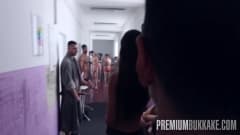 Tina Kay dá o melhor de si nessa boa sessão de foda, cercada por homens durões que querem gozar nela e com ela