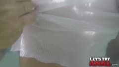 Uma bela jovem morena passa exibe seu corpo gostoso na piscina. Ela excita o cara, mostra sua bela bunda e vai para casa chupar o pau dele e foder.