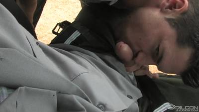 Dois policiais bonitos usam a patrulha para chupar o pau um do outro. Você não pode perder.