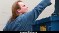 Depois de incomodar o zelador essa garota safada vai ser punida no vestiário. O homem vai amarrá-la ao banco e dar uma surra de pau, e a vagabunda adora!