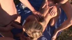 Eles levam ela a dar um passeio e, durante a viagem, ela começa a experimentar algumas bebidas que a sem sentido e transa com eles sem impedimentos...