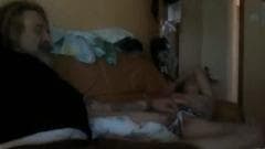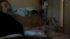 Este velho barbudo monta essa mulher bonita para transar com ela como um animal enquanto eles estão no sofá da sala de estar passando a tarde juntos.