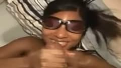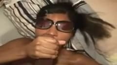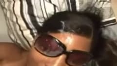 Essa morena de óculos não quer que o sêmen caia sobre seus olhos e é por isso que ela coloca alguns copos antes de se masturbar com seu macho.