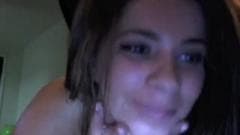 Aqui vemos uma linda e gostosa morena com um bom par de mamas que começa a se masturbar na frente da webcam para curtir mais do que ela