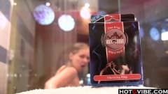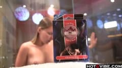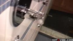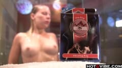 Loira gostosa se masturbando com anel vibrador durante o banho!
