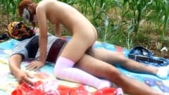 Essa ruiva não quer ser reconhecida e espera que esses dois machos possam agradá-la, colocando-a para chupar o pau ao ar livre.