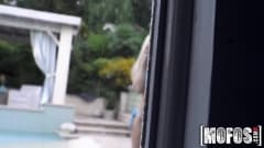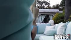 Aqui vamos ver uma linda loira que quer seduzir seu macho mostrando seu corpo em fato de banho na piscina, mas ela não está muito vestida.
