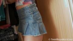 Esta menina está rolando no chão por causa da emoção que sente ao se masturbar com o seu favorito dildo...