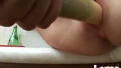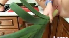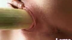 Os legumes frios, frescos da geladeira, são os dildos mais natural essa garota sabe, como eles não vão causar alergias.