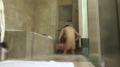 Que sorte esse cara de encontrar uma mulher oriental com a xoxota raspada e peitões, para foder muito tempo até ficar quente.