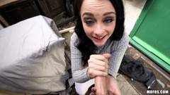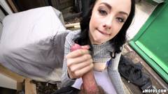 Um pouco de dinheiro e ela é fodida atrás do caminhão, essa boa vadiazinha está prestes a ser pega enquanto chupa