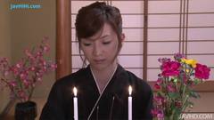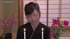 Essa japonesa se masturba com uma banana antes de ser fodida por três caras. Ela é tudo menos tímida