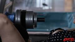 Abandonada por seus respectivos cônjuges, a loira peituda não tem medo de ser fodida por esse negro bem forte na academia em casa.