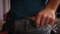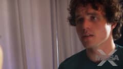 Mulher morena está prestes a se tocar na beira da escada antes que um homem chegue e foda sua buceta sem pressão