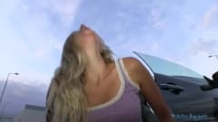 Uma linda garota com um corpo maravilhoso concorda em transar com o cara ao lado dela em um estacionamento. Ela não consegue parar de gritar de prazer.