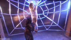 Essa loira nunca pensou que sua amiga quisesse envolvê-la em plástico e amarrá-la para que ela não pudesse se mexer enquanto chupava sua xoxota com prazer.