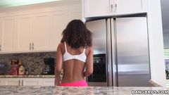 Uma mulher mestiça muito bonita com um corpo fantástico limpa um apartamento para depois ser esmagada por seu chefe empregador
