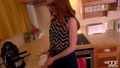 Uma ruiva com óculos doces para desfrutar