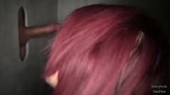 Esta ruiva tesuda gosta de chupar o pênis preto que sai da parede hoje. Esta mulher está muito excitada e precisa de prazer!