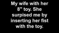 À noite ela acorda com muito calor e para acalmar seus desejos basta inserir um enorme dildo que passa por sua buceta como um galo.