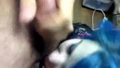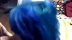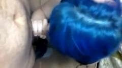 Este ponto de vista amador nos mostra uma garota de cabelo azul em ação. Todos nós sabemos que as mulheres que ficam tão chamativas