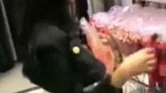 Esta mulher entra em uma loja de roupas e quando o trocador entra para experimentar uma roupa nova, um macho entra com ela no pó.