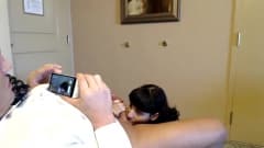 Aqui vemos como essa jovem morena transsexual tem um encontro sexual gostoso com um careca que gosta de foder e gozar em uma cena.
