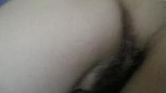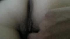 O namorado dela está em casa e com o celular dela e vai gravá-la enquanto enfia o dedo na buceta peluda. Isso a deixa excitada ao máximo com as mãos.