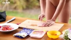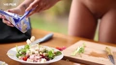 Essa morena prepara o almoço e depois gosta de acariciar sua buceta! Você não vai querer perder!