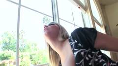 Novinha loira gostosa foi pega se masturbando na frente da janela então ele ajudou ela com sua enorme pica que penetrou na busetinha apertada dela