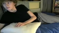 Esse jovem gay de cabelos cacheados se masturba deitado na frente da câmera e mostra a todos seu pau grande e seu cuzinho apertado!