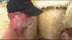 Este casal de avós gosta de transar ao ar livre e são muit criativos no celeiro. Veja como ele fode essa doce avó