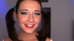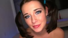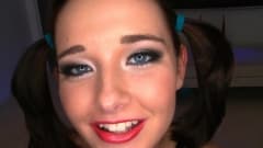 Uma morena muito gostosa, fantasiada de Alice, do país das maravilhas, vai dar um maravilhoso boquete no pau desse cara antes de ser fodida por ele!