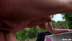 ![Uma loira bonita goza de trepada ao ar livre! Uma loira bonita goza de trepada ao ar livre!]()