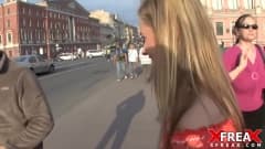 Esse cara está vendo na rua uma mulher que quer ganhar dinheiro transando com ele. Você vai ter uma loira que quer ser bem fodida.
