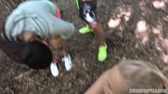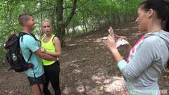 Na encruzilhada. Esse casal checo concorda em fazer sexo por uma taxa. E eles realmente aproveitam este momento na floresta