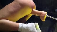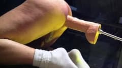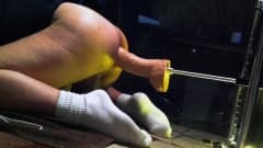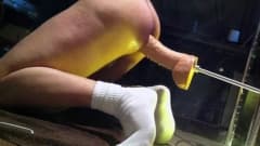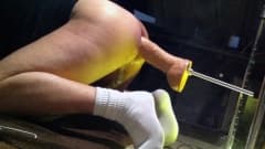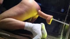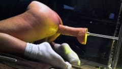 Esse cara maduro tem uma bunda grande adora enchê-la com um consolo grosso e ser fodido intensamente por uma máquina de sexo!