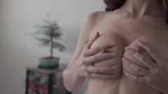 Uma morena gostosa com lindos seios naturais e uma bucetinha depilada vai se masturbar com os dedos e um dildo pra você ficar de pau duro! Que tesão!