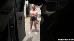 Essa linda loira que não tem medo do frio é fodida em um carro por esse cara gostoso enquanto o carro faz uma pequena curva.
