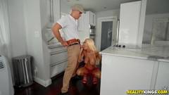 A loira espera que este homem lhe dê prazer entre suas pernas