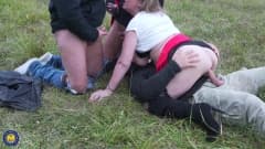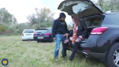 Neste vídeo, vemos uma loira recebendo três paus em um mercado de pulgas, e eles dão tudo de si para ela!