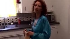 Esta Milf foi para a cozinha porque ela está com fome, mas o marido não imagina que ela não quer comida, e sim o que ela quer comer é o seu pênis.