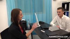 Katy Rose é uma morena que também é uma boa prostituta e vai ser fodida no escritório. Seu novo chefe quer fodê-la