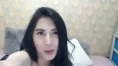 Não perca esta jovem transexual gostosa em lingerie preta sexy se masturbando e tocando sua bunda na frente da câmera.