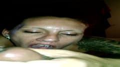 Essa puta tatuada adota chupar rolas. Antes do boquete de garganta profunda ela passa óleo no pau do cara para ficar mais gostoso e chupa suas bolas!