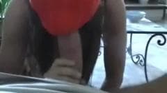 Para que não a reconheçam chupando esse pau, essa morena decidiu colocar um capuz grande para cobrir parte do rosto enquanto chupa.