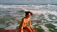 Esta mulher madura decidiu se libertar de tudo e ficou nua na praia para se divertir como nunca antes com seu corpo e mostrando sua buceta peluda