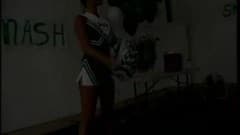 Uma bela líder de torcida quente como o fogo vai ter a oportunidade de transar com uma multidão de machos no calor nesse incrível gang bang!