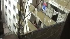 Este casal decidiu foder na varanda do seu apartamento e eles esperam que ninguém os veja, mas há sempre um vizinho que grava tudo!