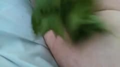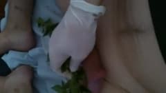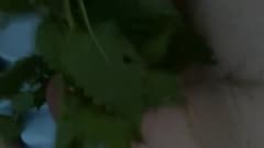 Esse cara é um fetichista da natureza e se acaricia e masturba com ramos de folhas verdes. Ele usa um anel peniano para manter o pau duro por mais tempo